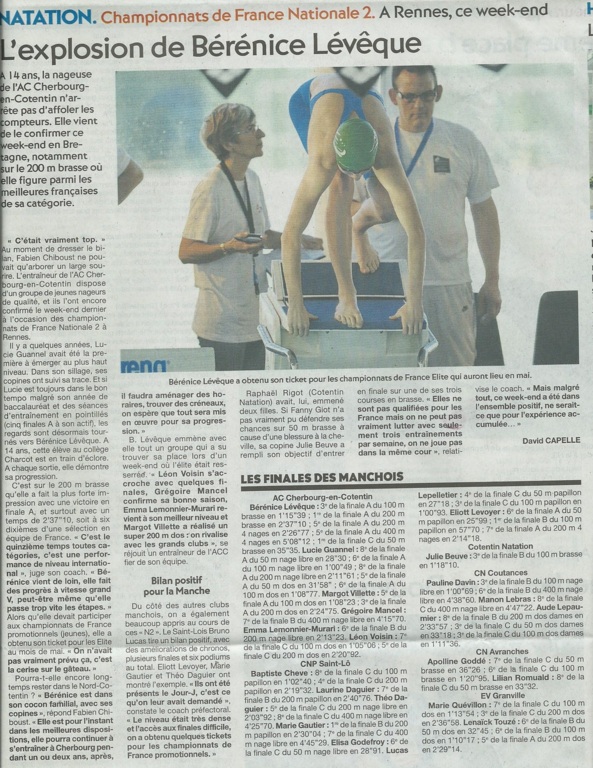 Championnats de Fance de natation Nationale 2 à Rennes. ACC en super forme !