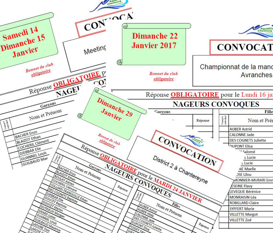 Avant chaque compétitions, la liste des nageurs convoqués sera publiée dans le calendrier, à chaque compétition.