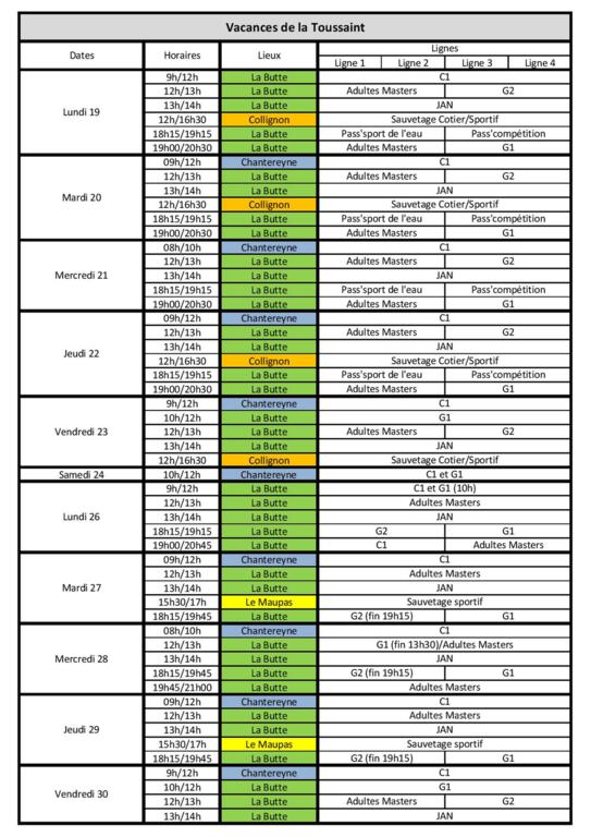 Ci-joint vous trouverez le planning complet des vacances. Les autres entraînements ne sont pas optionnels. Le planning peut encore changer car j'attends le retour de Yoann pour la PPG.